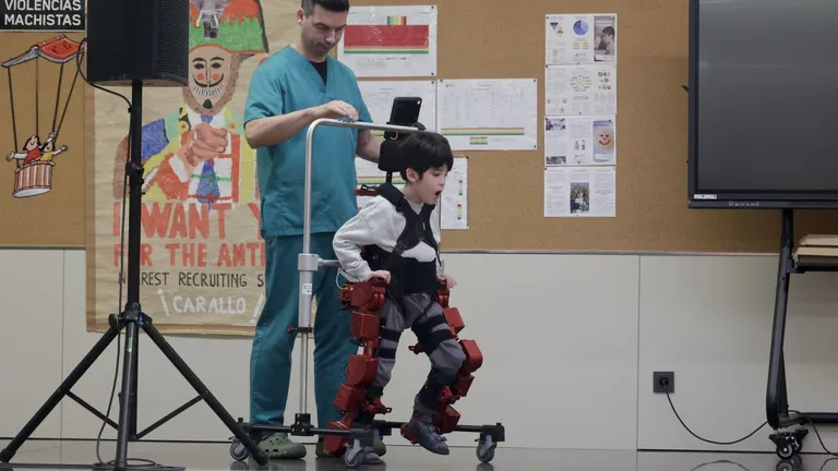 Darío Campos, un niño coruñés de 9 años con parálisis cerebral, dio un paseo este miércoles mostrando las posibilidades que ofrece el exoesqueleto pediátrico Atlas 2030. Vea esta noticia